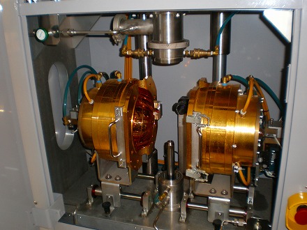 Floating Zone Methodに使用する単結晶製造装置。当研究室メイン装置です。