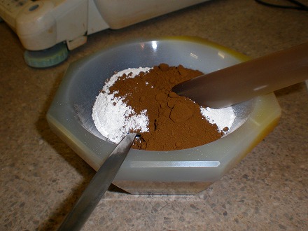 様々な粉を様々な割合で混ぜていきます。まだ世界で誰も挑戦していない条件で混ぜていきます。