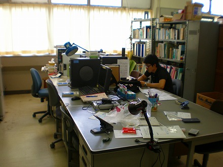 1人1つ机が与えられ、学生はこの机で勉強したり談笑したりネットしたりと、自由に使えます。